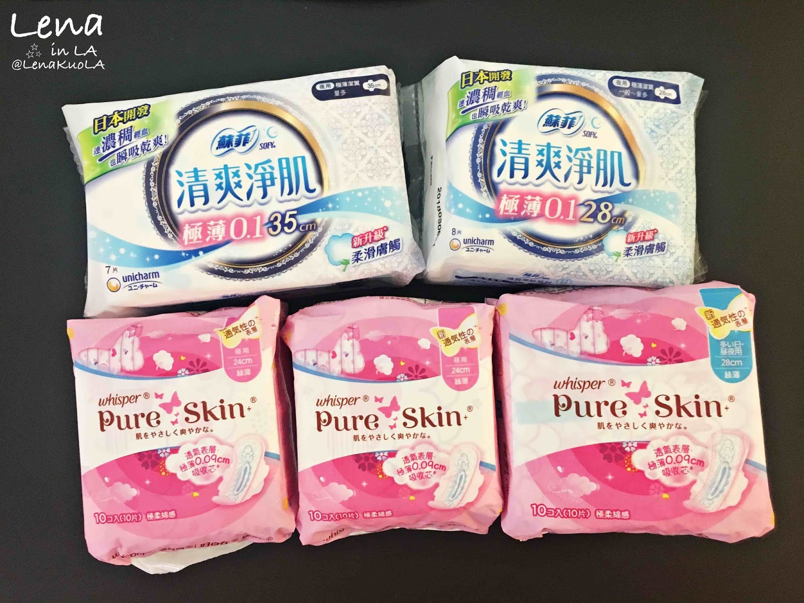- 因為準備的日本衛生棉不夠用,後來請老公去幫我買美國的衛生棉,沒想到吸水性比這些日本品牌都還要好太多!乾爽性無敵!無摩擦感!